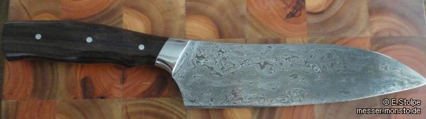 Beschreibung: Kochmesser, Klinge 528 Lagen Damast Griff aus Edelstahl und Makassar-Ebenholz